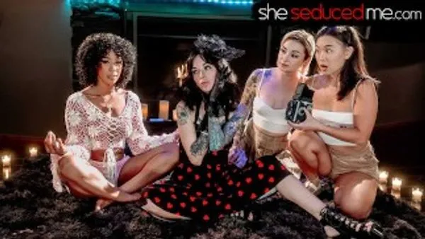- 在火种上发现了一个荡妇,并邀请了一个带有绑带的女同性恋三人组